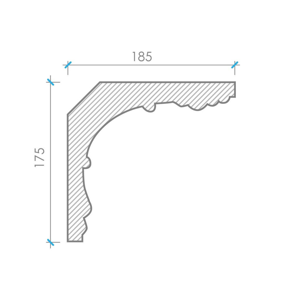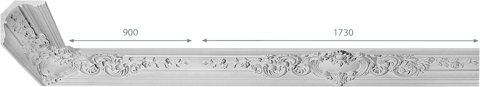К‑151 — декоративний гіпсовий карниз висотою 175 мм і шириною 185 мм із вишуканим рельєфним орнаментом рослинного типу. Його м’які лінії надають інтер’єру відчуття гармонії та завершеності, створюють плавний перехід між стіною і стелею. Такий елемент підкреслює архітектурний стиль і формує вишукану композицію.