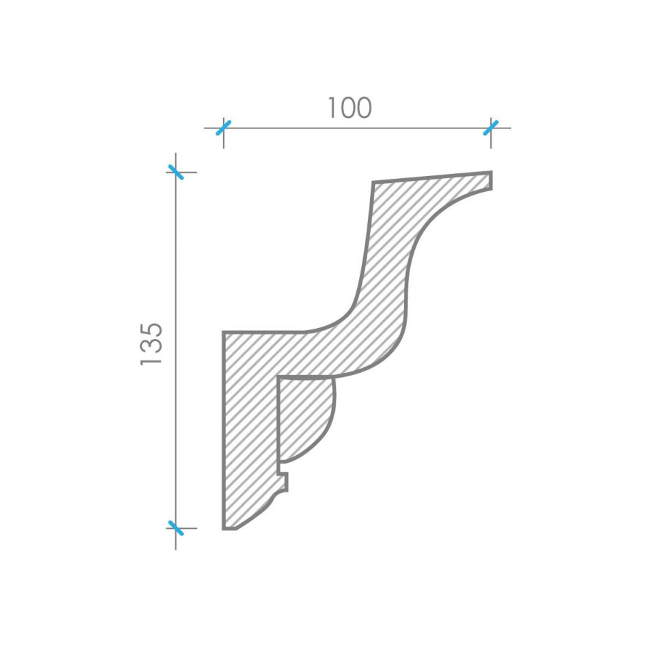 К‑94 — декоративний гіпсовий карниз висотою 135 мм та шириною 100 мм, виконаний у класичному стилі з характерним об'ємним орнаментом у вигляді повторювальних м'яких скульптурних овалів та органічних деталей. Його величавий, гармонійний профіль з виразною пластичною композицією створює архітектурно престижний ефект, надаючи інтер'єру класичної величавості та скульптурної глибини, при цьому зберігаючи оптимальні пропорції та плавність.