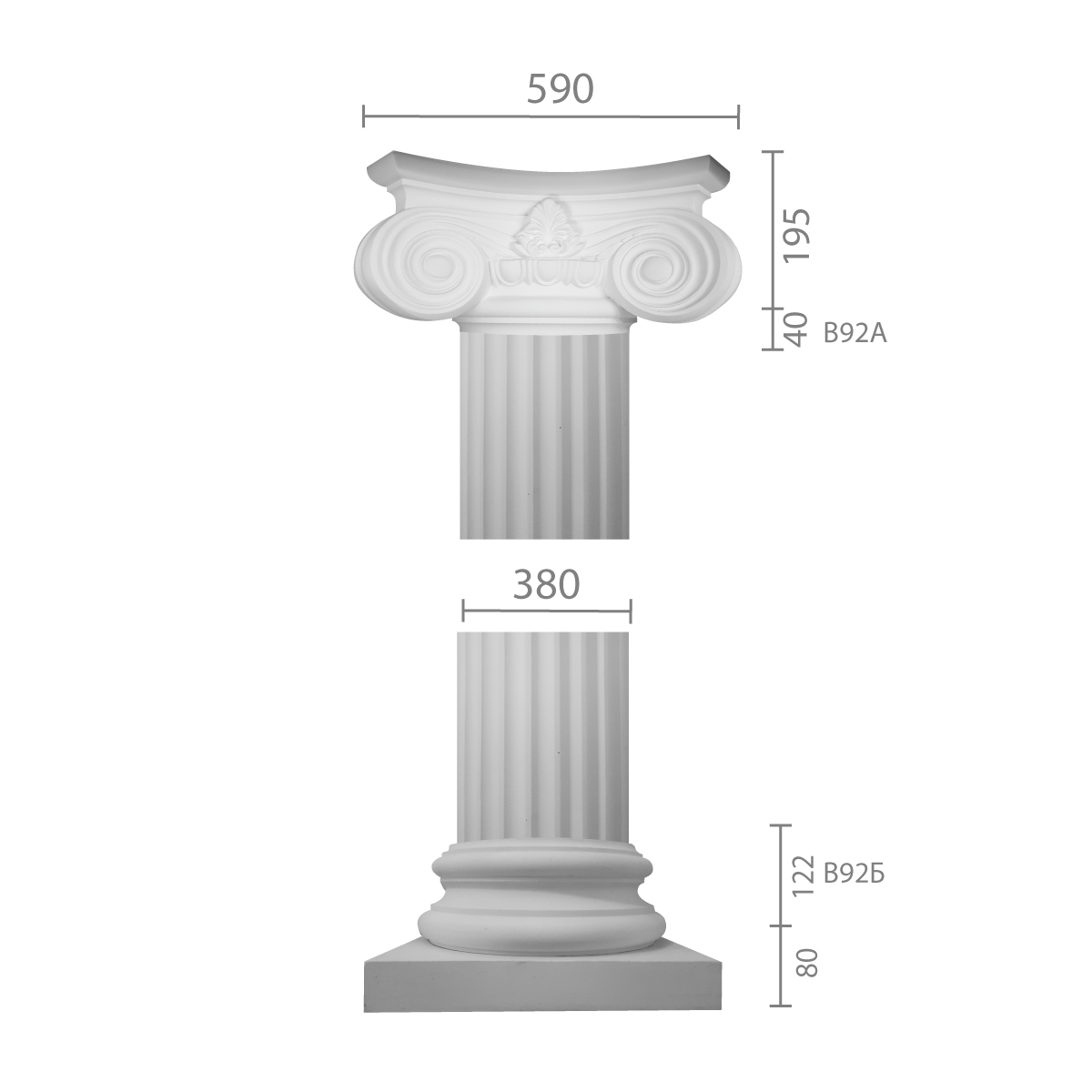 Капітель колони ка-92 складається з Кп - 92 і в-92А і стикується: