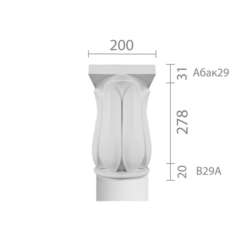 Капітель колони ка-29 складається з Абака 29, Кп-29 і В-29А і стикується: