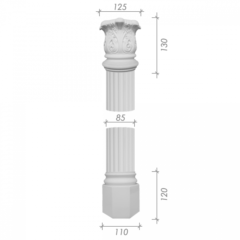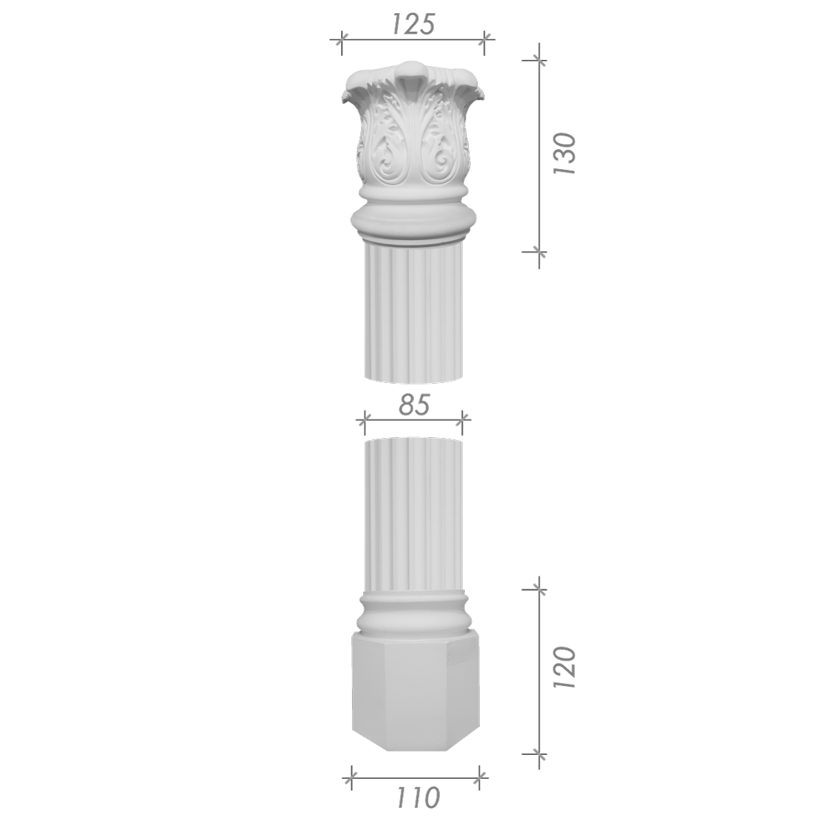 Капітель і база рахуються окремо. Висота стовбура колони виготовляється під розмір замовника.