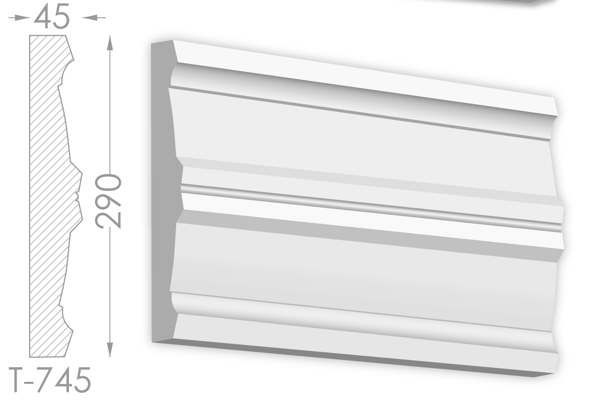 Молдинг – (Тяга) - універсальний декоративний елемент з гіпсу, оригінальної форми, який використовується для кріплення на вертикальну площину. Виріб призначений для декорування внутрішніх стін приміщень. Мета-створення особливого візуального ефекту, зонування стельової області, верхньої частини стін, завершення дизайнерського інтер'єру, внесення «останніх штрихів». Конструкція виконана з якісних матеріалів, колір – білий, відповідний кольору сировини. Молдинг може бути декорований відповідно до обраної колірної гами стилем, пофарбованим в необхідний відтінок. Параметри виробу: висота – 290 мм, ширина – 32 мм.