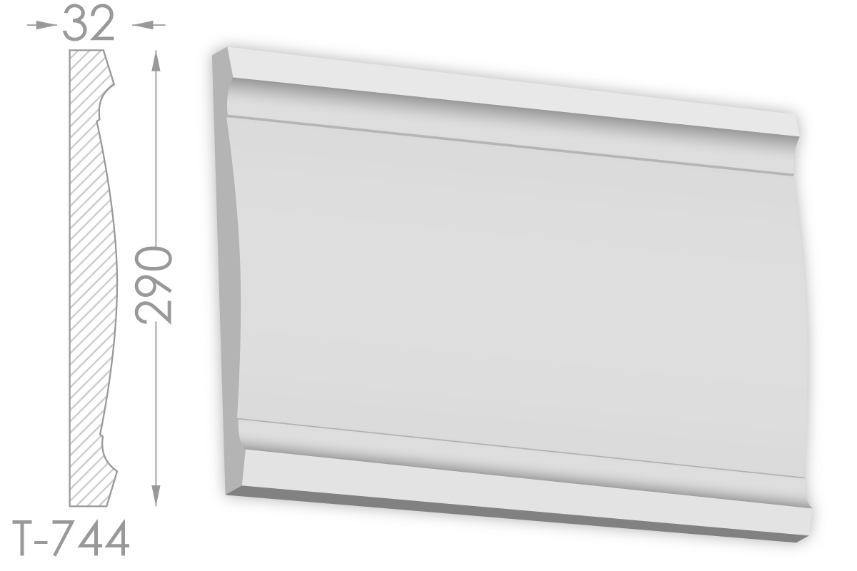 Молдинг – (Тяга) - універсальний декоративний елемент з гіпсу, оригінальної форми, який використовується для кріплення на вертикальну площину. Виріб призначений для декорування внутрішніх стін приміщень. Мета-створення особливого візуального ефекту, зонування стельової області, верхньої частини стін, завершення дизайнерського інтер'єру, внесення «останніх штрихів». Конструкція виконана з якісних матеріалів, колір – білий, відповідний кольору сировини. Молдинг може бути декорований відповідно до обраної колірної гами стилем, пофарбованим в необхідний відтінок. Параметри виробу: висота – 290 мм, ширина – 32 мм.
