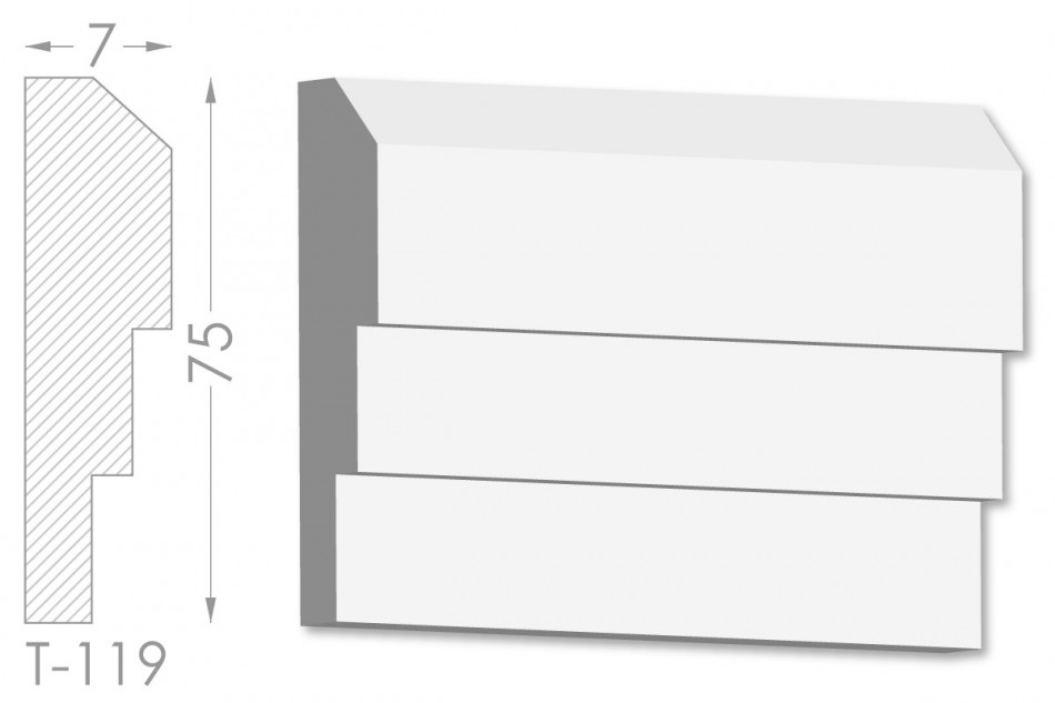 Молдинг – (Тяга) - універсальний декоративний елемент з гіпсу, оригінальної форми, який використовується для кріплення на вертикальну площину. Виріб призначений для декорування внутрішніх стін приміщень. Мета-створення особливого візуального ефекту, зонування стельової області, верхньої частини стін, завершення дизайнерського інтер'єру, внесення «останніх штрихів». Конструкція виконана з якісних матеріалів, колір – білий, відповідний кольору сировини. Молдинг може бути декорований відповідно до обраної колірної гами стилем, пофарбований в необхідний відтінок. Параметри виробу: висота – – 75 мм, ширина – 20 мм.
