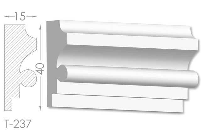 Молдинг – (Тяга) - універсальний декоративний елемент з гіпсу, оригінальної форми, який використовується для кріплення на вертикальну площину. Виріб призначений для декорування внутрішніх стін приміщень. Мета-створення особливого візуального ефекту, зонування стельової області, верхньої частини стін, завершення дизайнерського інтер'єру, внесення «останніх штрихів». Конструкція виконана з якісних матеріалів, колір – білий, відповідний кольору сировини. Молдинг може бути декорований відповідно до обраної колірної гами стилем, пофарбованим в необхідний відтінок. Параметри виробу: висота – 40 мм, ширина – 15 мм.