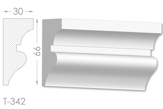 Молдинг – (Тяга) - універсальний декоративний елемент з гіпсу, оригінальної форми, який використовується для кріплення на вертикальну площину. Виріб призначений для декорування внутрішніх стін приміщень. Мета-створення особливого візуального ефекту, зонування стельової області, верхньої частини стін, завершення дизайнерського інтер'єру, внесення «останніх штрихів». Конструкція виконана з якісних матеріалів, колір – білий, відповідний кольору сировини. Молдинг може бути декорований відповідно до обраної колірної гами стилем, пофарбованим в необхідний відтінок. Параметри виробу: висота – 66 мм, ширина – 30 мм.