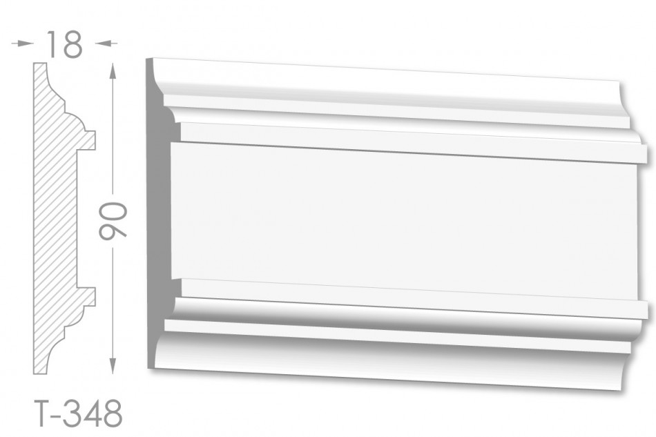 Молдинг – (Тяга) - універсальний декоративний елемент з гіпсу, оригінальної форми, який використовується для кріплення на вертикальну площину. Виріб призначений для декорування внутрішніх стін приміщень. Мета-створення особливого візуального ефекту, зонування стельової області, верхньої частини стін, завершення дизайнерського інтер'єру, внесення «останніх штрихів». Конструкція виконана з якісних матеріалів, колір – білий, відповідний кольору сировини. Молдинг може бути декорований відповідно до обраної колірної гами стилем, пофарбованим в необхідний відтінок. Параметри виробу: висота – 90 мм, ширина – 18 мм.