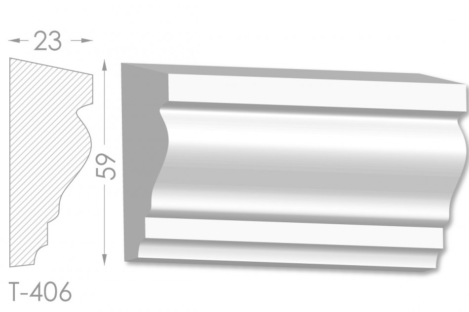 Молдинг – (Тяга) - універсальний декоративний елемент з гіпсу, оригінальної форми, який використовується для кріплення на вертикальну площину. Виріб призначений для декорування внутрішніх стін приміщень. Мета-створення особливого візуального ефекту, зонування стельової області, верхньої частини стін, завершення дизайнерського інтер'єру, внесення «останніх штрихів». Конструкція виконана з якісних матеріалів, колір – білий, відповідний кольору сировини. Молдинг може бути декорований відповідно до обраної колірної гами стилем, пофарбованим в необхідний відтінок. Параметри виробу: висота – 59 мм, ширина – 23 мм.