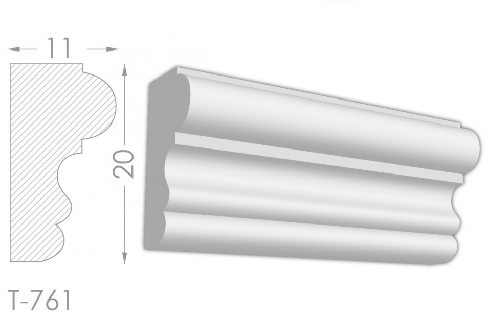 Молдинг – (Тяга) - універсальний декоративний елемент з гіпсу, оригінальної форми, який використовується для кріплення на вертикальну площину. Виріб призначений для декорування внутрішніх стін приміщень. Мета-створення особливого візуального ефекту, зонування стельової області, верхньої частини стін, завершення дизайнерського інтер'єру, внесення «останніх штрихів». Конструкція виконана з якісних матеріалів, Колір – Білий, відповідний кольору сировини. Молдинг може бути декорований відповідно до обраної колірною гамою стилем, пофарбований в необхідний відтінок. Параметри виробу: висота – 20 мм, ширина - 11 мм.
