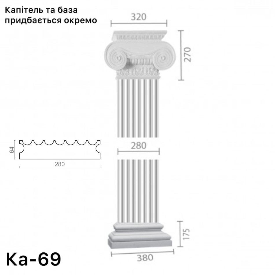 Капітель і база рахуються окремо. Висота стовбура пілястри виготовляється під розмір замовника