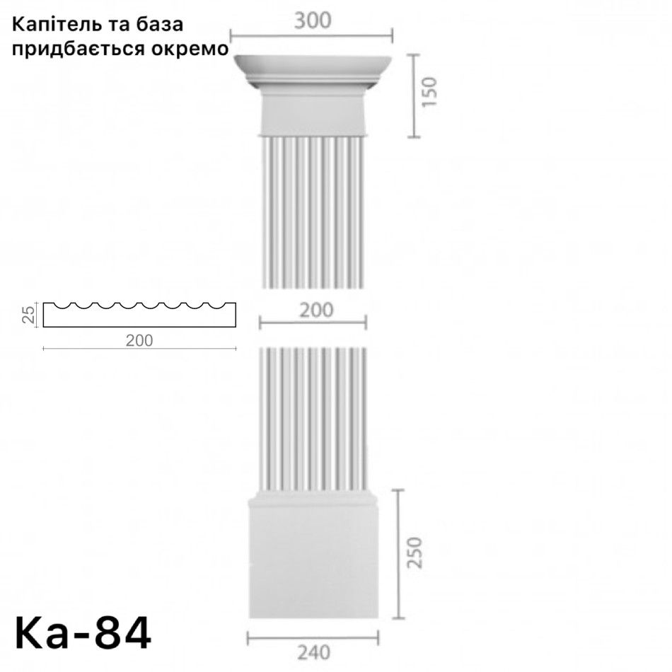 Капітель і база рахуються окремо. Висота стовбура пілястри виготовляється під розмір замовника