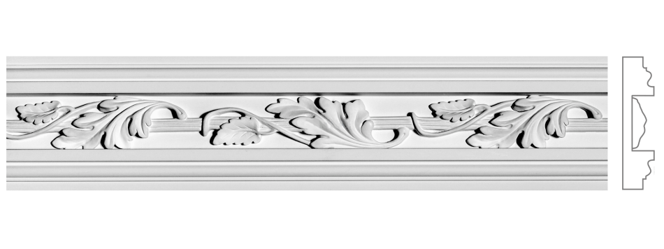 Класична стилістика: багатий рельєф, плавні лінії, традиційні листя та віньєтки.