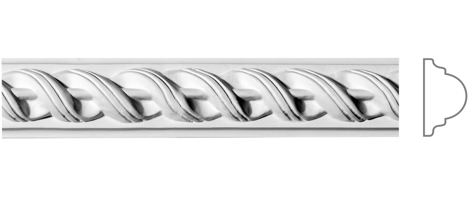 П‑42 — орнаментований гіпсовий молдинг висотою 58 мм. Формує виразні панелі та фризи, підкреслює портали й ніші, вибудовує чіткий ритм інтер’єру та додає глибоку світлотінь — благородний акцент без перевантаження.