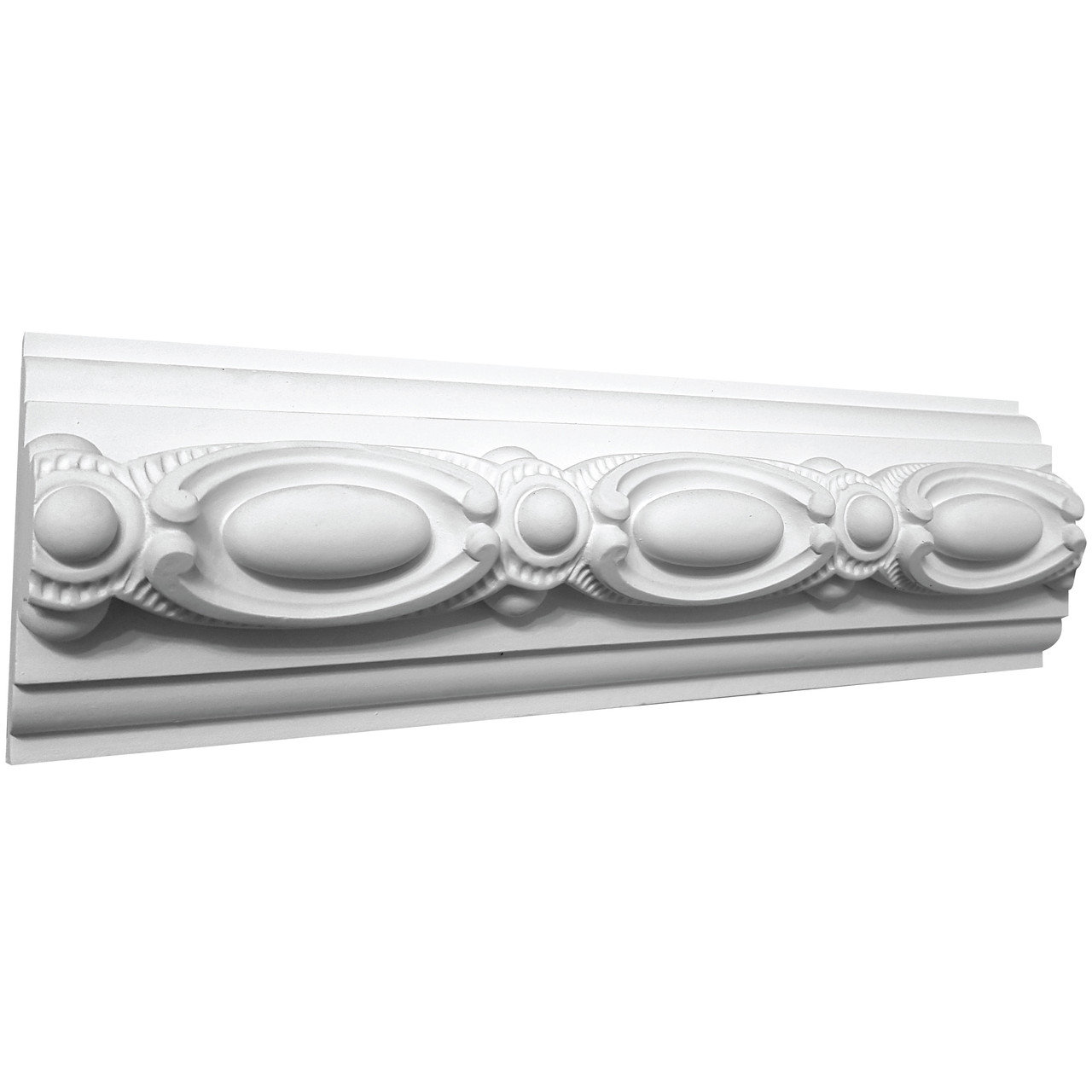 П‑56 — орнаментований гіпсовий молдинг висотою 85 мм. Виразний, солідний профіль для стінових панелей і фризів, елегантних рам навколо дзеркал, картин та дверних прорізів. Формує глибшу світлотінь і додає інтер’єру архітектурної ваги.