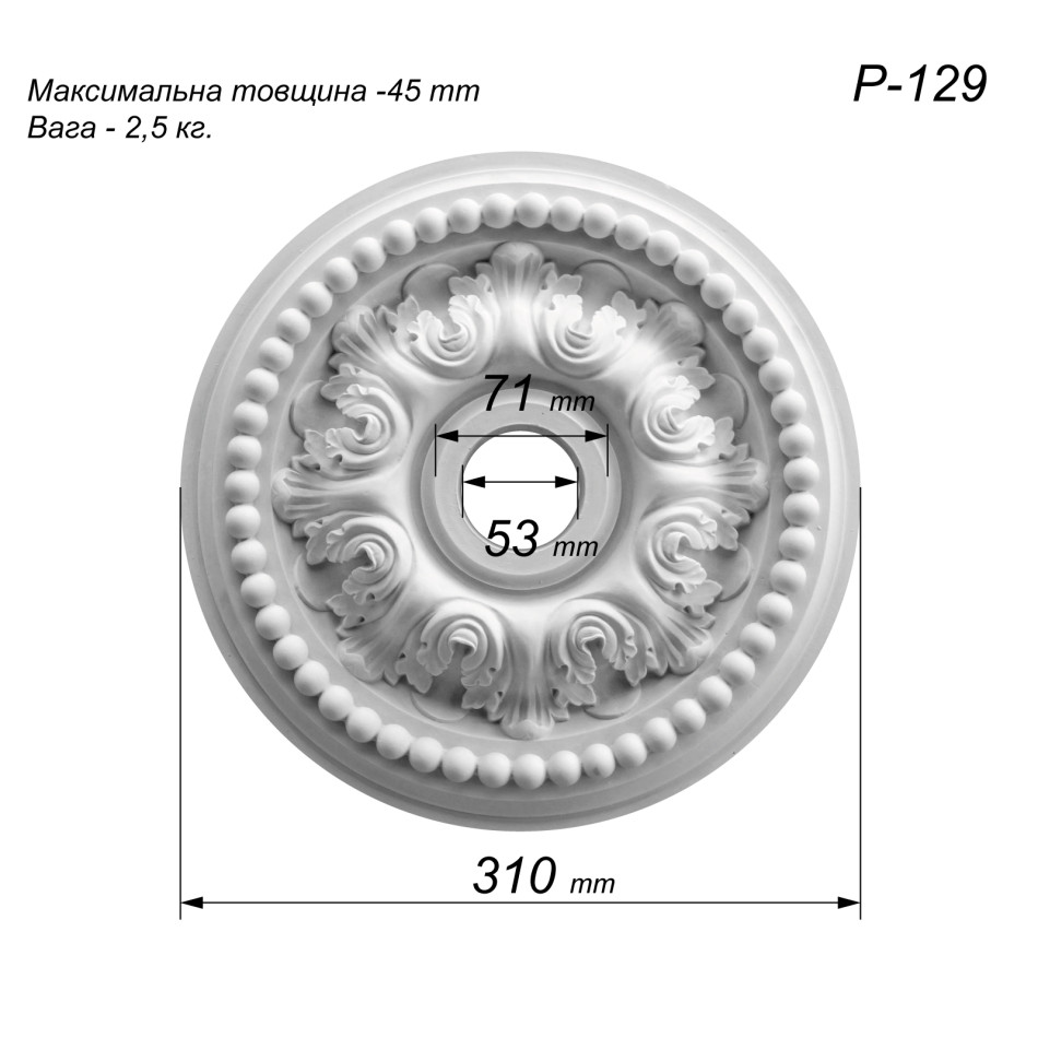 розетка з гіпсу Р-129 діаметром Ø310 мм — це середньо розмірна