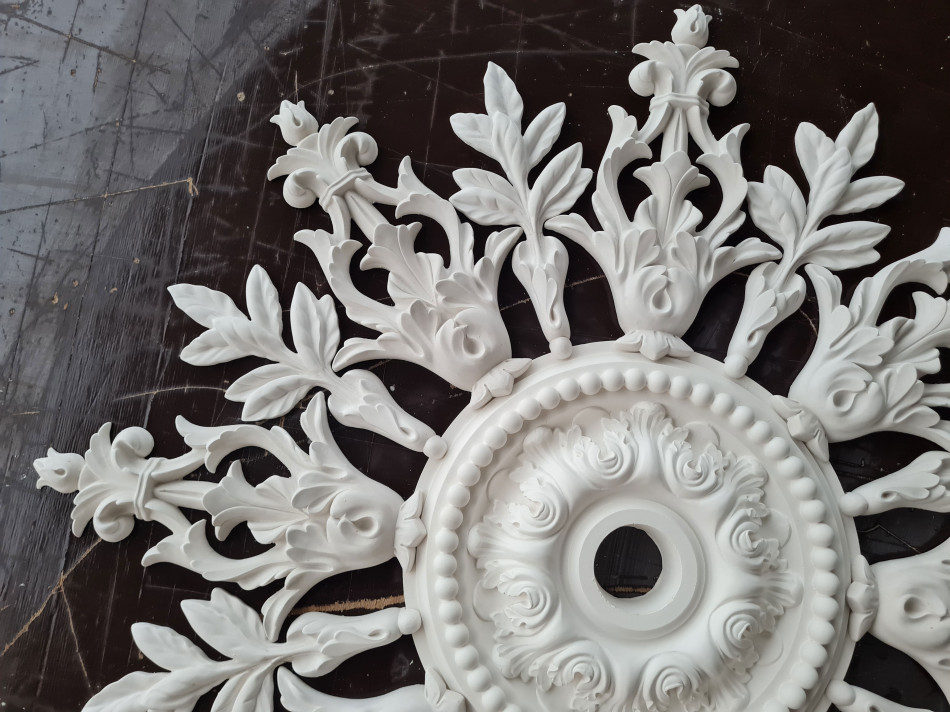 Особливості Розетка стельова з гіпсу Р-129 Ø840 мм:
