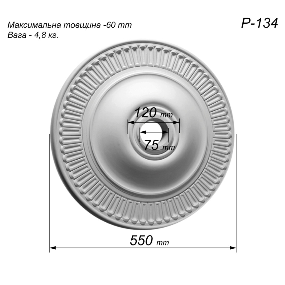 розетка з гіпсу Р-134 діаметром Ø550 мм — це середньо розмірна