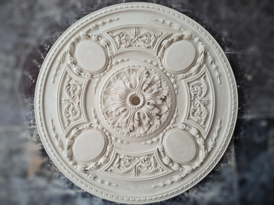 Гіпсовий стельовий медальйон гармонійно поєднується у