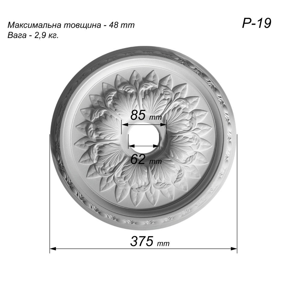 Купити Розетка стельова з гіпсу Р-19 діаметром Ø380 мм -