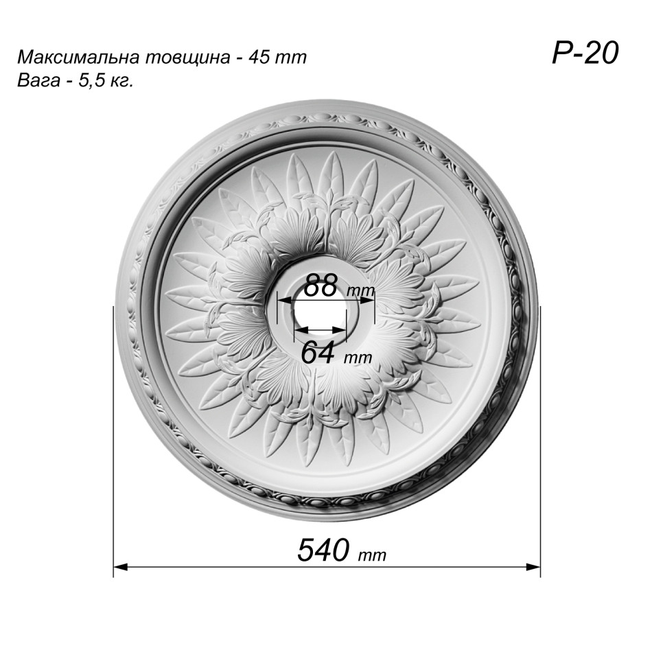 розетка з гіпсу Р-20 діаметром Ø540 мм — це середньо розмірна
