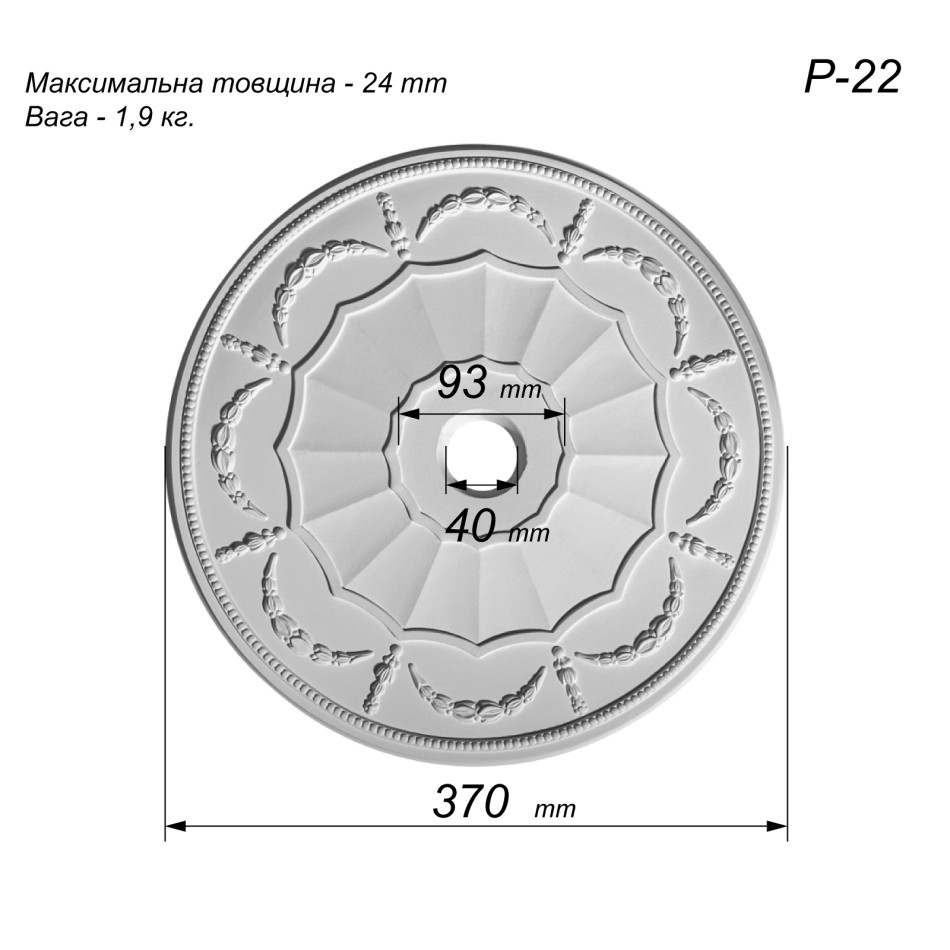 розетка з гіпсу Р-22 діаметром Ø370 мм — це середньо розмірна
