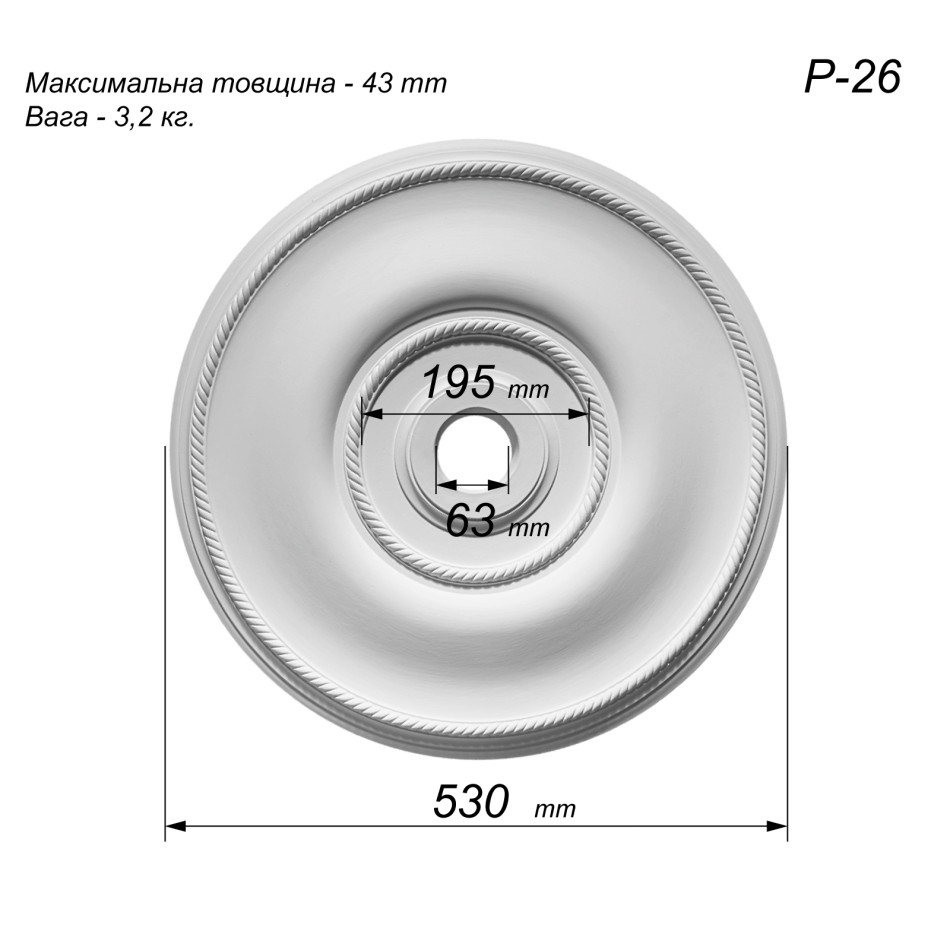 Купити Розетка стельова з гіпсу Р-26 діаметром Ø530 мм -