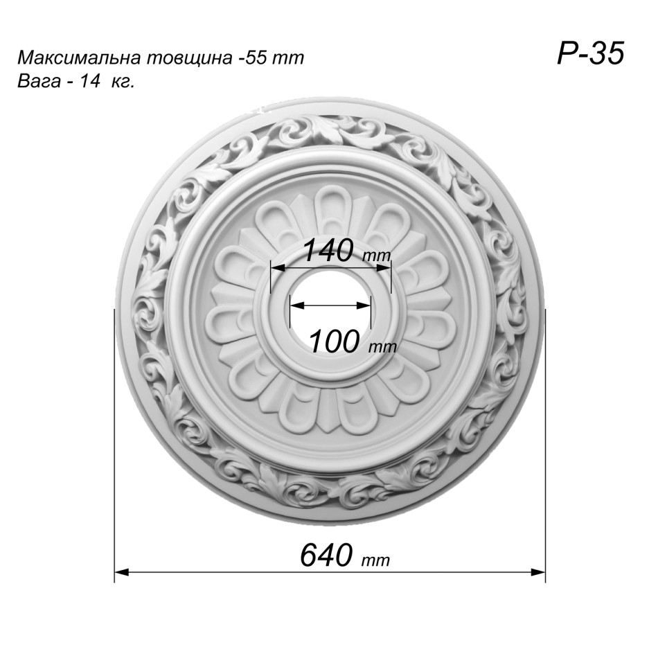 розетка з гіпсу Р-35 діаметром Ø640 мм — це середньо розмірна