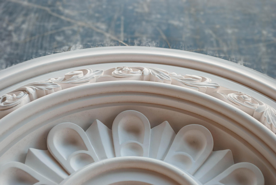 карнизами, фризами, тягами та молдингами стельові розетки надають ремонту