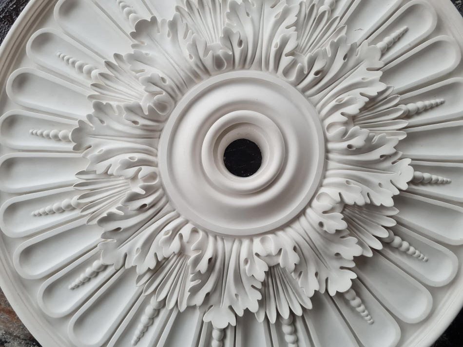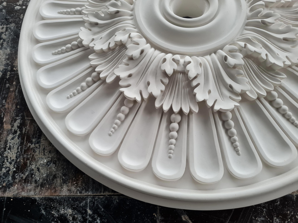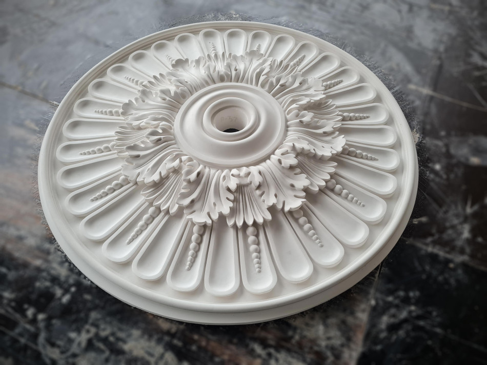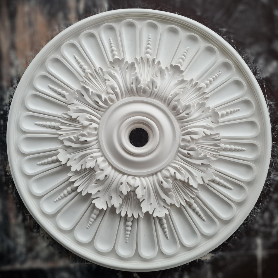 Розетка гіпсова в класичному стилі з листям та намистинками р-37 Ø645