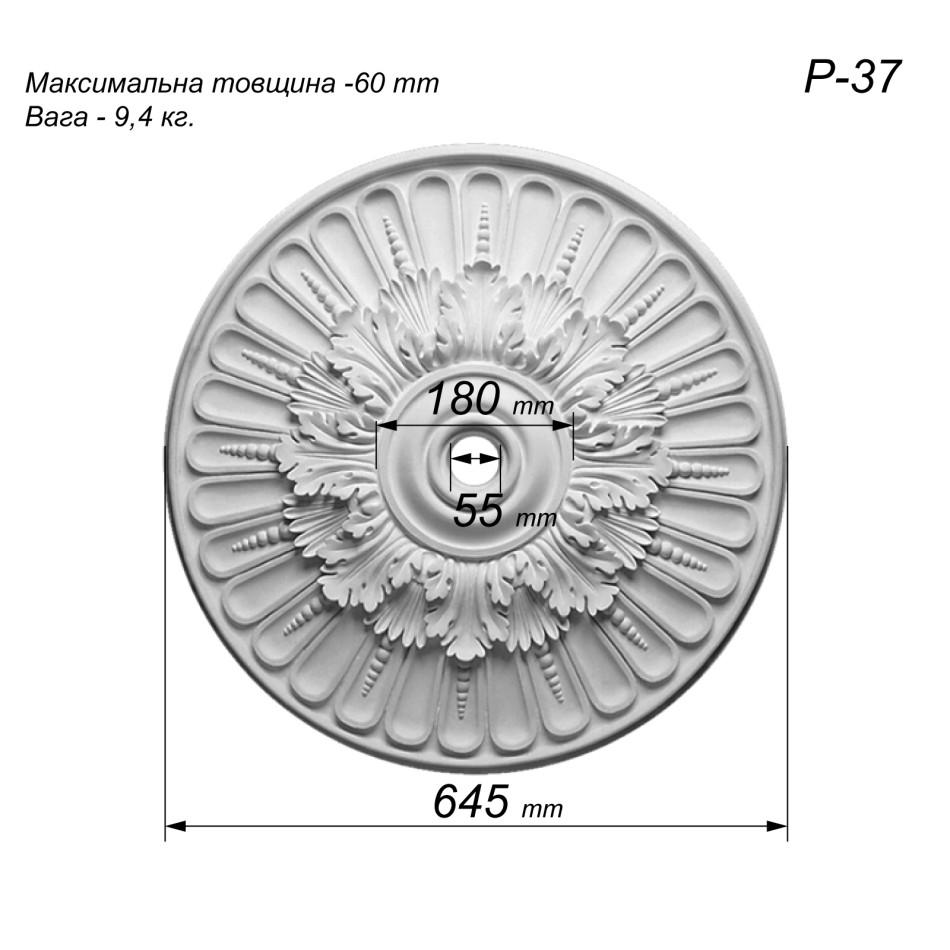 розетка з гіпсу Р-37 діаметром Ø645 мм — це середньо розмірна