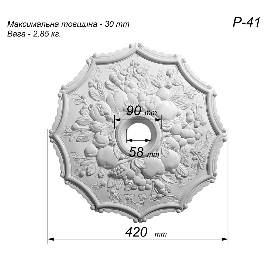 Розетка стельова з гіпсу з фруктовим малюнком, символ достатку р-41 Ø440