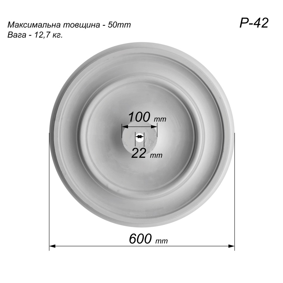 розетка з гіпсу Р-42 діаметром Ø600 мм — це середньо розмірна