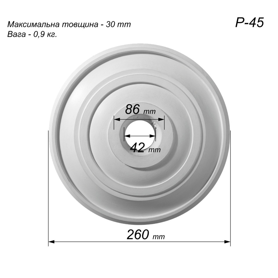 Купити Розетка стельова з гіпсу Р-45 діаметром Ø260 мм -
