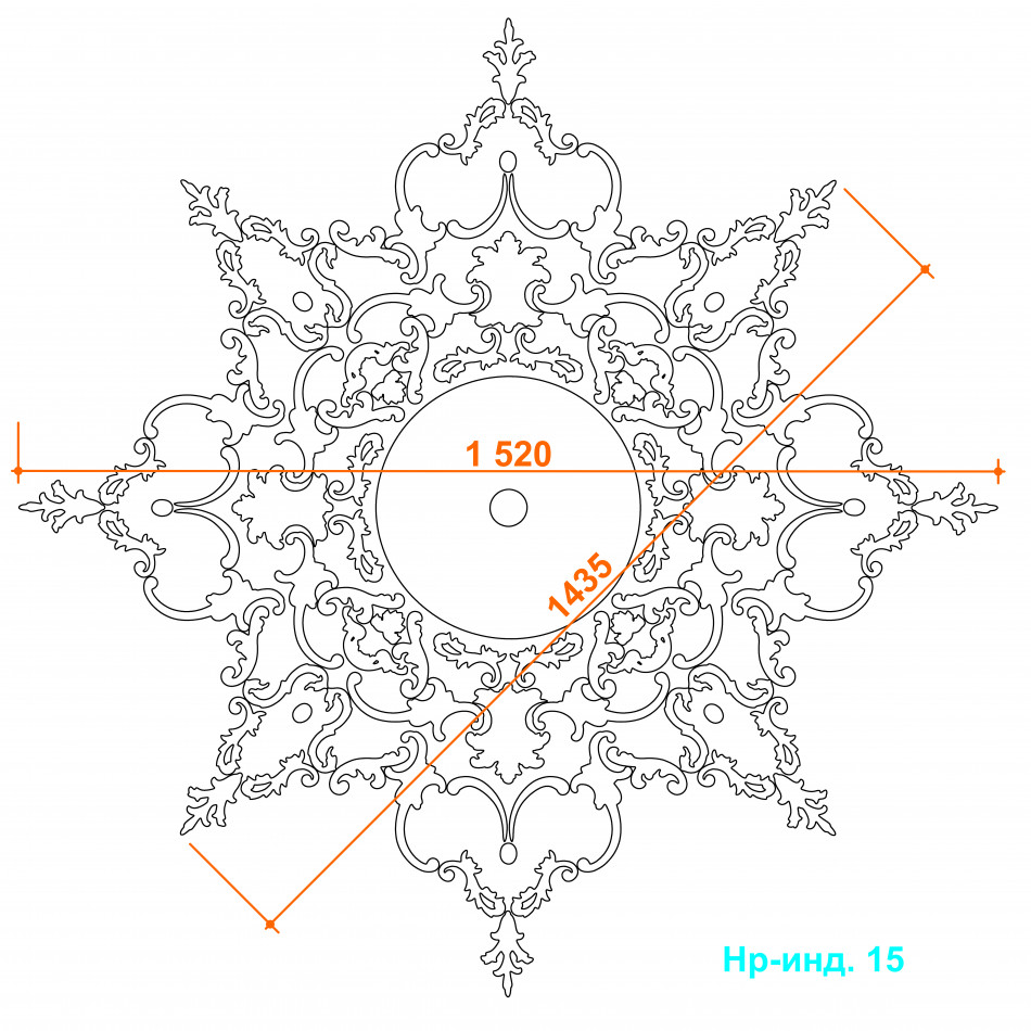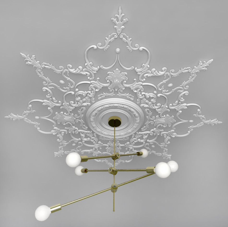 Набірна стельова розетка в стилі рококо, у формі восьмигранної зірки, з діаметром 1520 мм.