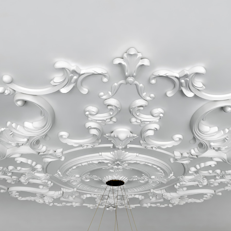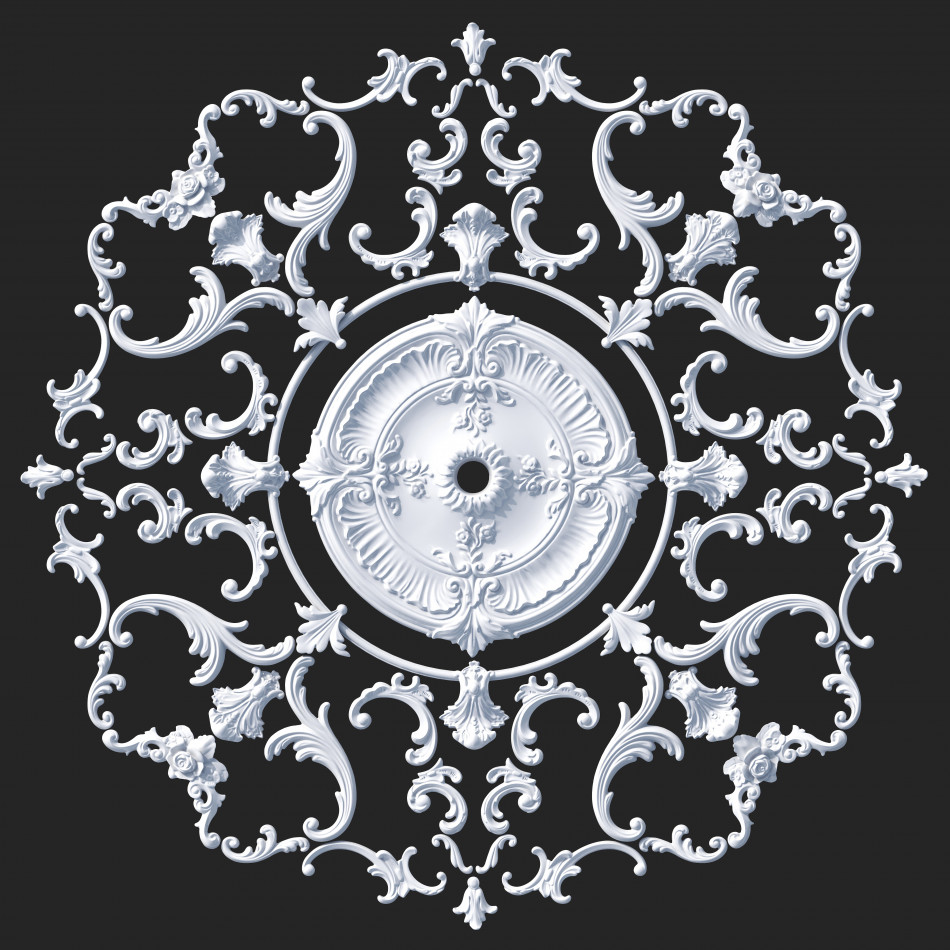 Набірна стельова розетка в стилі рококо, у формі кола, з діаметром 1370 мм.