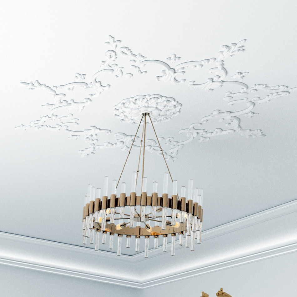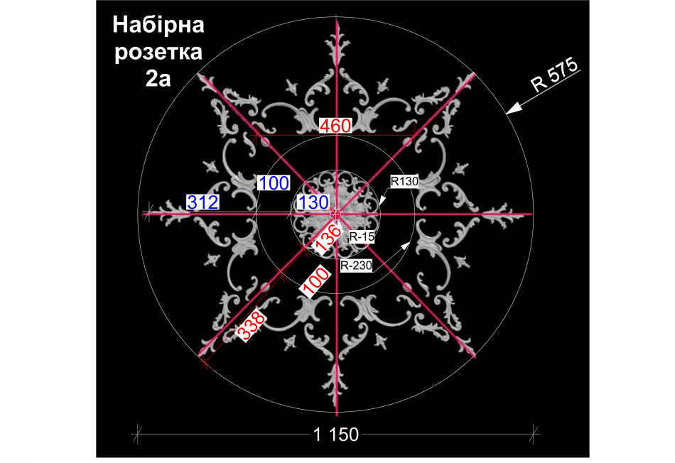 "Набірна стельова розетка Нр-інд. 2а" може бути використана як центральний елемент стелі, підкреслюючи розкіш та витонченість приміщення. Вона також може служити основою для люстри, додаючи завершеності та гармонії в інтер'єр.