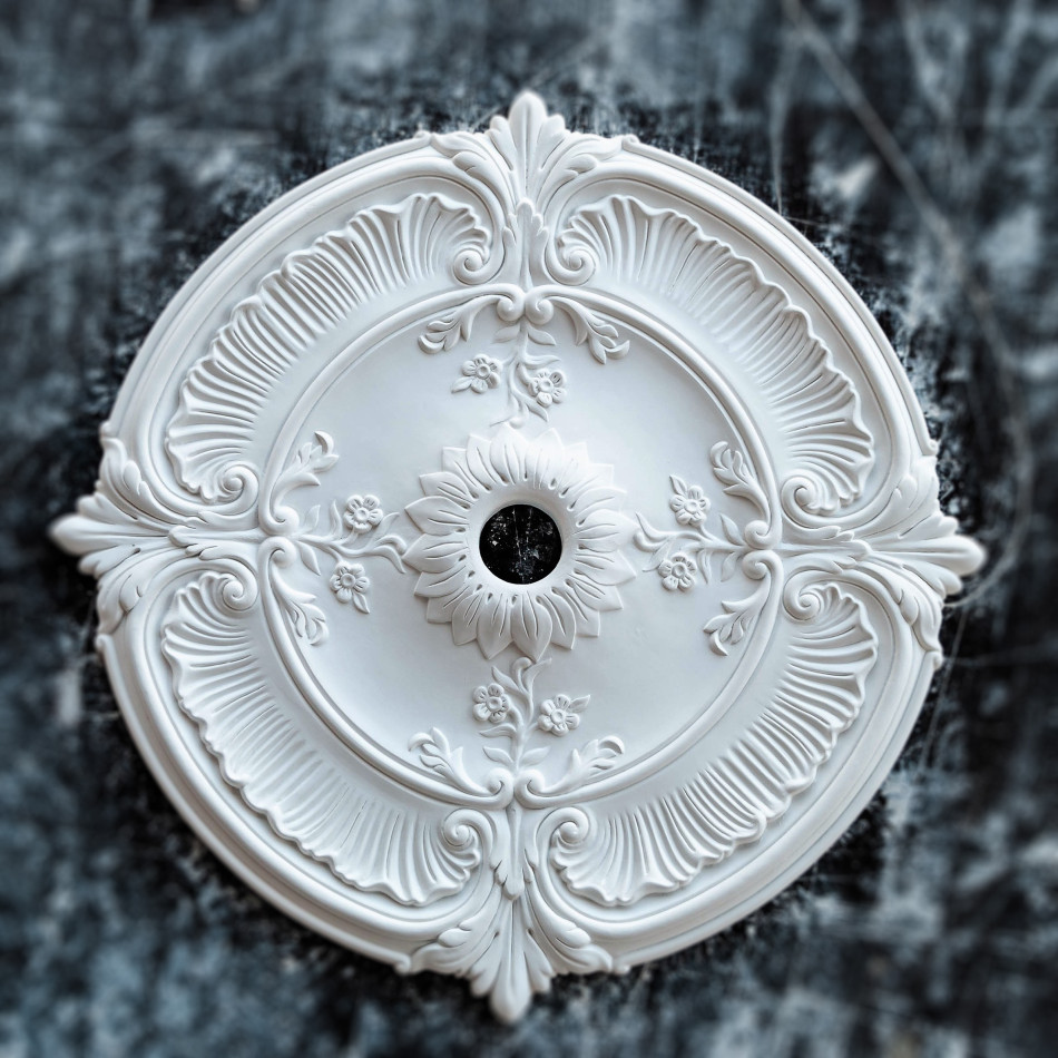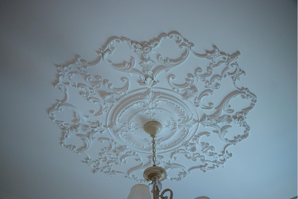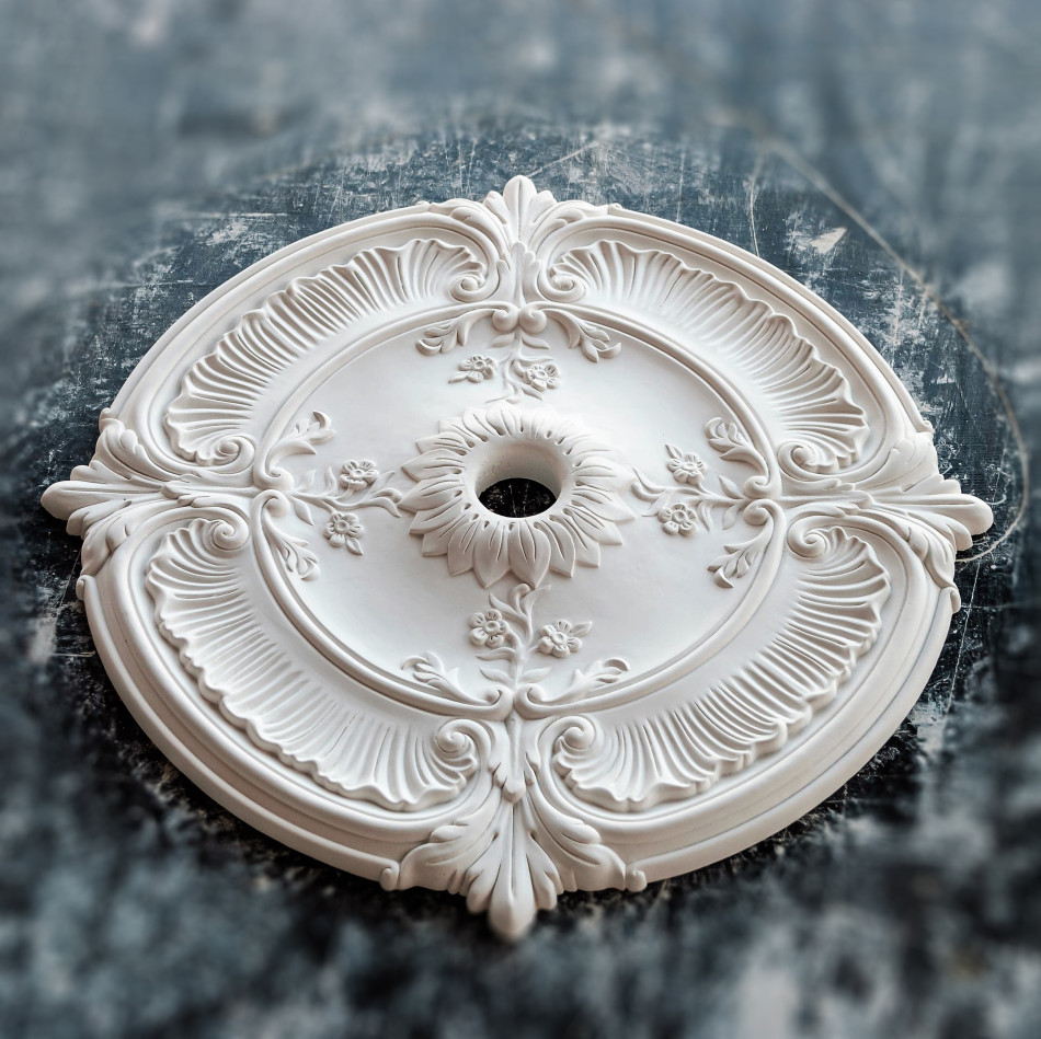 Гіпсовий стельовий медальйон гармонійно поєднується у