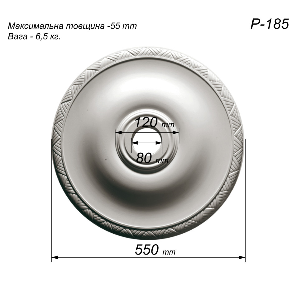 розетка з гіпсу Р-185 діаметром Ø550 мм — це середньо розмірна