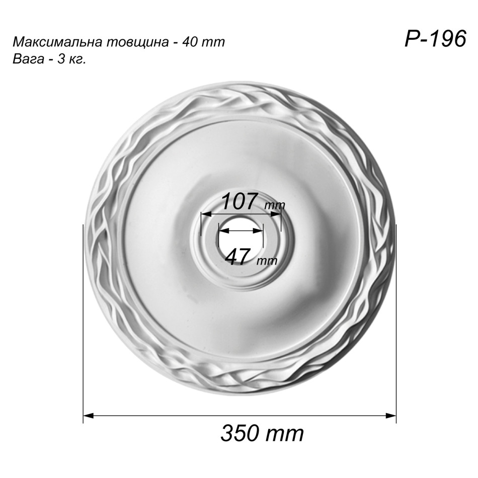 Особливості Розетка стельова з гіпсу Р-196 Ø350 мм: