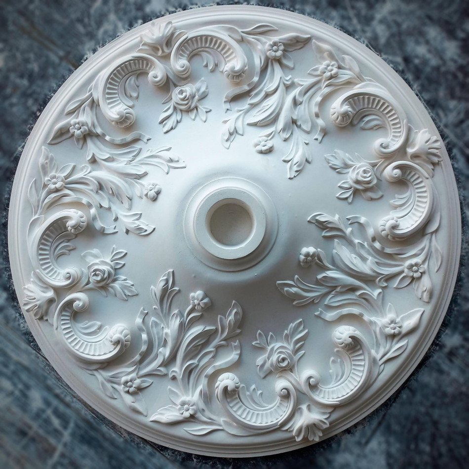 Гіпсовий стельовий медальйон гармонійно поєднується у