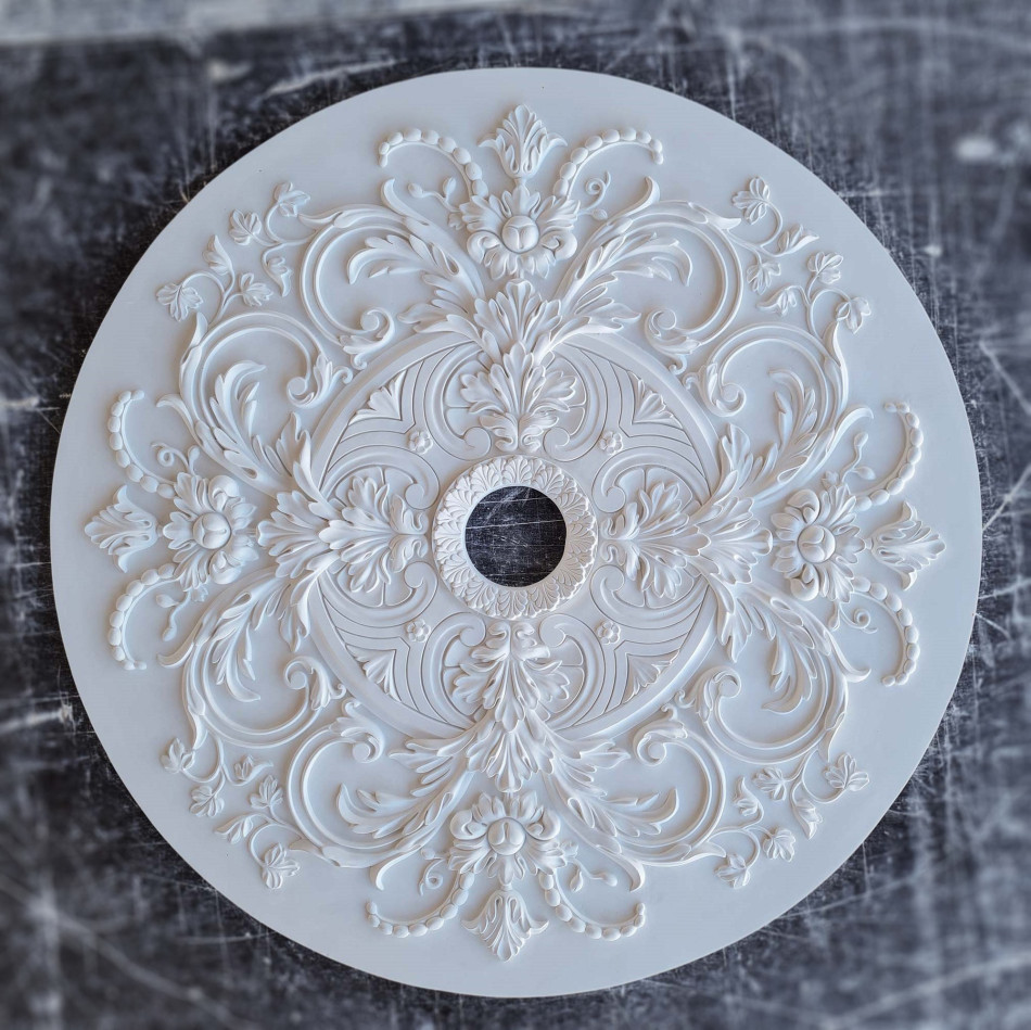 Розетка гіпсова у стилі рококо з витонченим малюнком р-250 Ø880