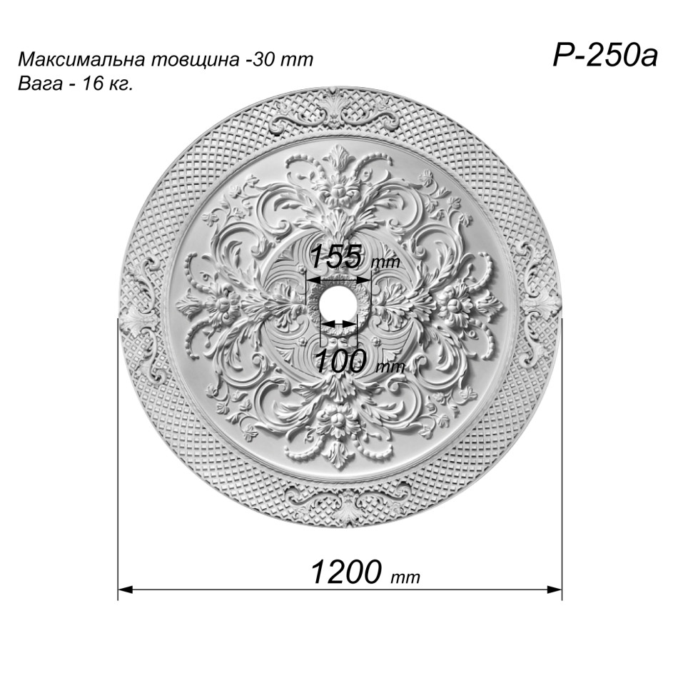 Купити Розетка стельова з гіпсу Р-250 діаметром Ø1200 мм -