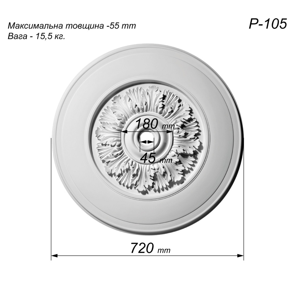 Особливості Розетка стельова з гіпсу Р-105 Ø720 мм: