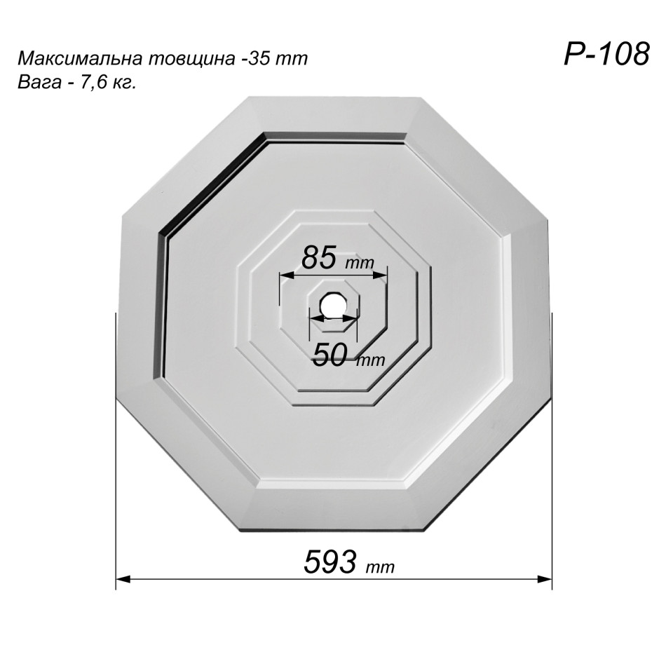 Розетка стельова з гіпсу р-108 Ø593