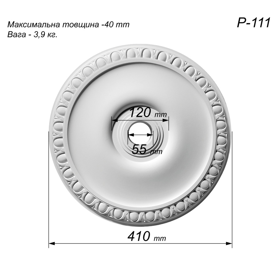 Купити Розетка стельова з гіпсу Р-111 діаметром Ø410 мм -