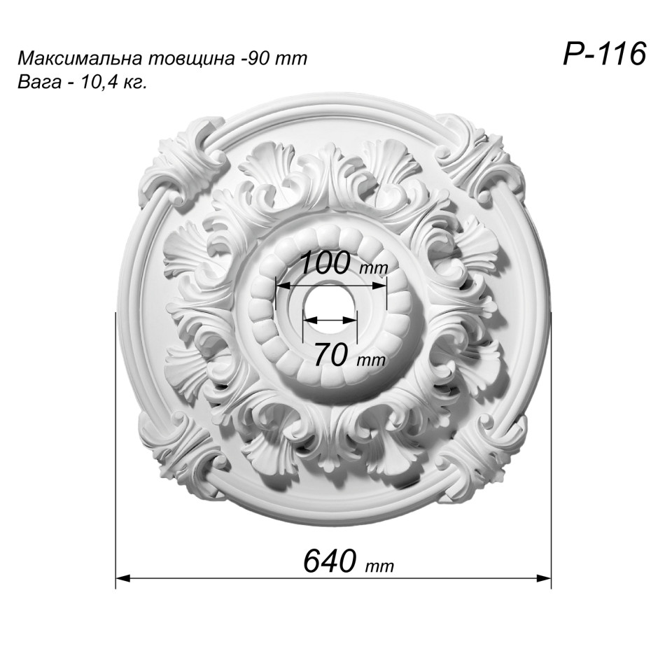 Купити Розетка стельова з гіпсу Р-116 діаметром Ø640 мм -