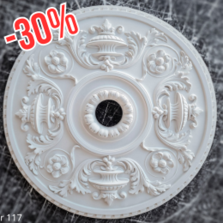 Розетка гіпсова з класичним малюнком флористики та ваз р-117 Ø500