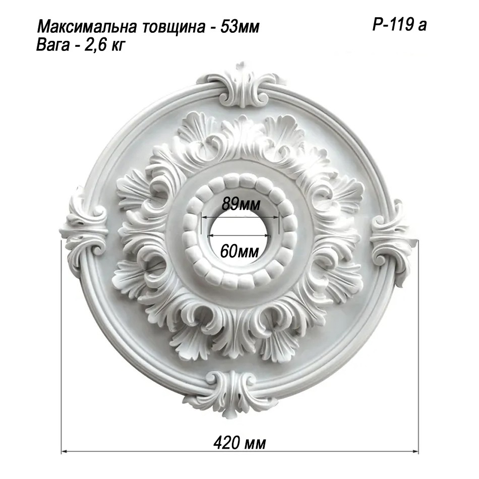 Особливості Розетка стельова з гіпсу Р-119 Ø410 мм: