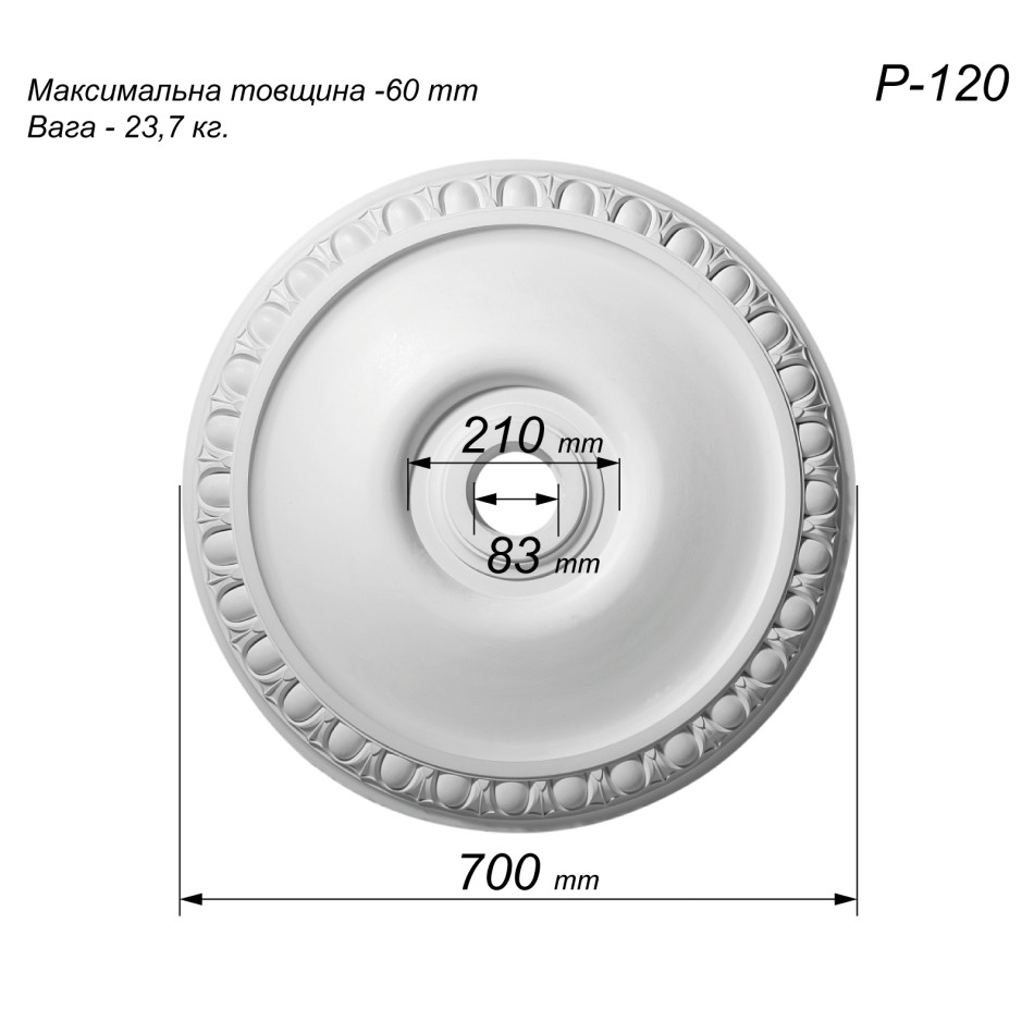 розетка з гіпсу Р-120 діаметром Ø700 мм — це середньо розмірна
