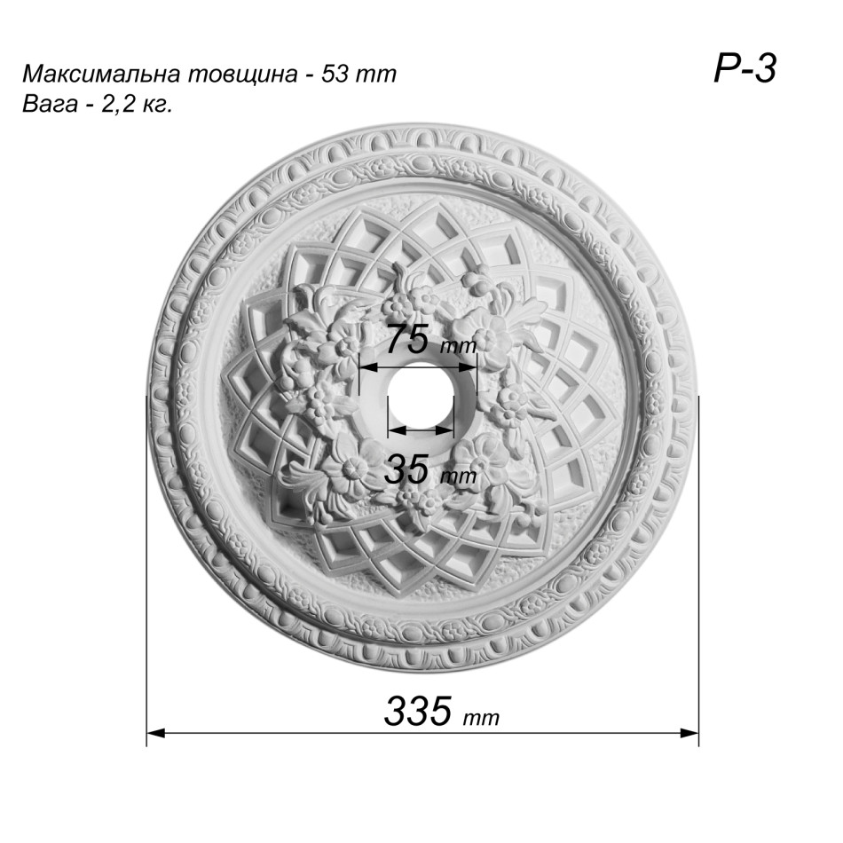 Купити Розетка стельова з гіпсу Р-3 діаметром Ø340 мм -